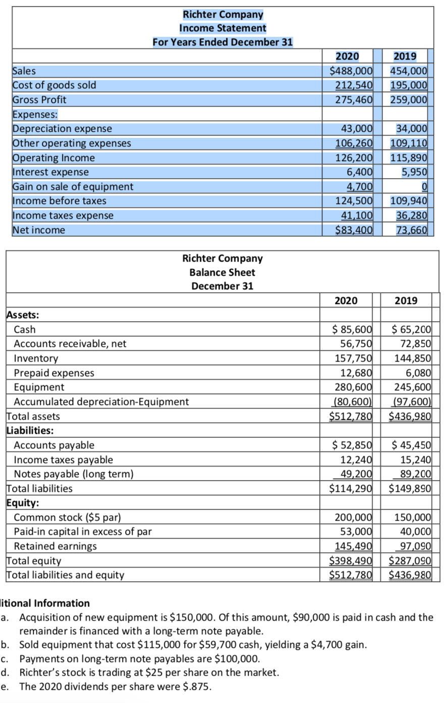 Solved Prepare A Statement Of Cash Flows For 2020 In Good Chegg Com