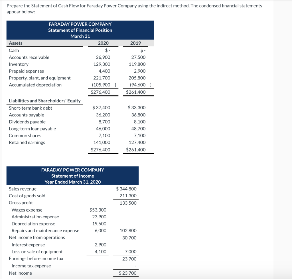 Solved Prepare The Statement Of Cash Flow For Faraday Power Chegg Com