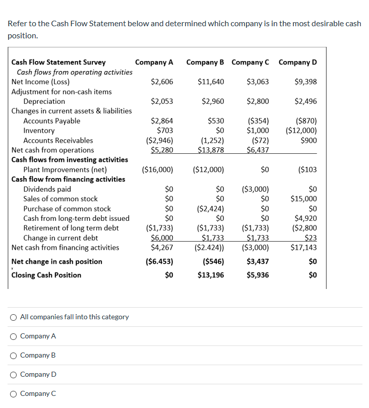 Solved Refer To The Cash Flow Statement Below And Determined Chegg Com